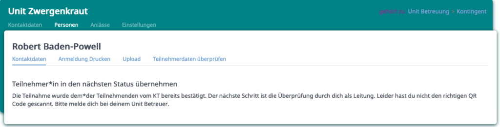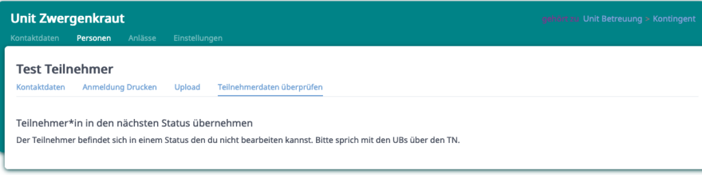 Wenn ihr als Unit Anmeldungen bekommt, sollten die Personen im Status bestätigt durch KT sein.