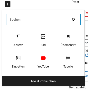 Text kann man einfach eingeben. Durch drücken auf das „+“ bekommt man die möglichkeit andere Inhalte hinzuzufügen.