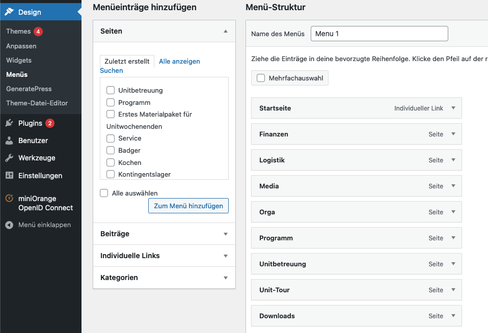 Im Menü kannst du bestimmen welche Seiten im Menü direkt verlinkt sind.